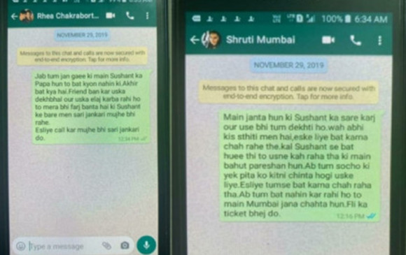 रिया को लिखे मैसेज में सिंह कह रहे हैं, जब तुम जान गई हम सुशांत के पापा हूं तो बात क्यों नहीं की। आखिर बात क्या है। फ्रेंड बनकर उसका देखभाल और उसका इलाज करवा रही हो तो मेरा भी फर्ज बनता है कि सुशांत के बारे में जानकारी मुझे भी रहे। इसलिए कॉल कर मुझे भी सारी जानकारी दो।
